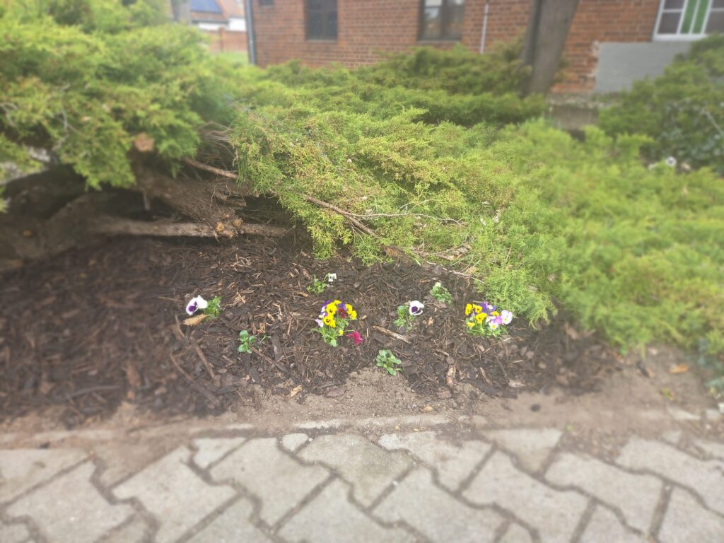 So waren wir am 4. April auch auf dem Friedhof und haben im Eingangsbereich und um das Soldatengrab und die Gräber der Familien „von Schulenburg“ und „Eilitz“ wieder ansehnlich gemacht – Laub entfernt, Unkraut gejätet, neue Blühpflanzen gesetzt. Außerdem haben wir das Sandarium vom Unkraut befreit und auch unseren kleinen Teich an der Wasserstelle gesäubert, der inzwischen von einem Frosch bewohnt wird; auch eine Schlange wurde dort schon einmal gesehen.